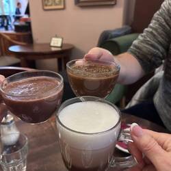 TravelerBruce and Lee were both in chocolate heaven - I like mine less chocolatey but we were all happy with our choices and we were warmed up!