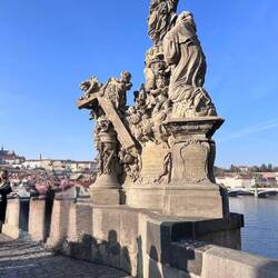 The sculpture from the 14th Century was the last item to be installed before the bridge’s opening, as a key sculpture for those to always see the crucifix when crossing the famous bridge. The statue and cross surrounded by sculptures evolved and was changed many times over the centuries. It is surrounded by the Hebrew words קדוש קדוש קדוש יהוה צבאות (Holy, Holy, Holy is Jehovah of hosts) from Isaiah 6:3. Sadly put there to embarrass Jews, one of the stories, is that in 1696, a Jewish communal leader named Elias Backoffen was forced to pay for the inscription after being accused of blasphemy. This prayer is very meaningful to all religions.