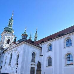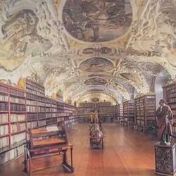 Strahov (guard) Monastery and library: founded in 1143 at a site where guards stood watch and formed when a community of monks from Steinfeld in the Rhine Valley settled at Strahov. One of the oldest and most important monasteries in the Czech Republic, the Romanesque Basilica built in the 12th century and was one of Europe’s most extensive Romanesque buildings at the time and became a center of knowledge and spiritual life, with a Baroque library (see photo). Many prominent Czech scholars and intellectuals studied and worked there. It has also been the site of many important historical events, including the Velvet Revolution in 1989 (see yesterdays’ posting). In addition to the Gothic and Classical styles, there are Baroque style elements (ornate decoration, curved lines, and dramatic lighting) in the monastery’s design.