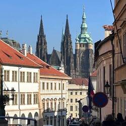 On our second full day in Prague we went on another walking tour, this time focused on the Prague Castle and Castle District. We began at the Josef Manes Bridge (the first downstream bridge from the Charles) named for the famous painter. His famous Czech paintings includes many landscapes of the bridge and the scenery across the river. We proceeded by tram across the river and up to the castle to spend a few hours on a walking tour exploring the grounds and the famous buildings build over centuries, built in many different styles by rulers and artists of the day. We also saw the castle and the changing of the guard and got wonderful views back of the Old City skyline. Some of the places that we visited included: