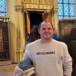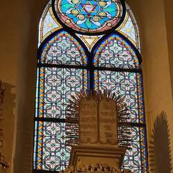 There were many stories about artifacts here. For example, the Torah ark curtain you see me with is Velvet, silk, appliqué, embroidered with river pearls and Bohemian garnets, refurbished in 1767. In 1664, Maisel's estate won a long-time legal dispute over property that had been confiscated by the state in 1601. More than 30 years later, the curtain and mantle were paid for by private donors to buy back from the owners for the Synagogue. Then during the Nazi period it disappeared again and was finally obtained after fighting for it after the war.Read more