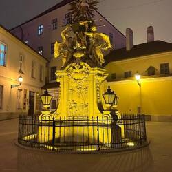 Becsi Kapu square was our first stop (after a stop at the cafe for coffee) where there is Carmelite church and the statue of famous Hungarian artist Kisfaludy Karoly; Hungarian writer, playwright and painter, founder of Hungarian national drama.