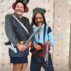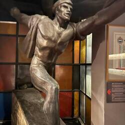 In the first exhibit you see the “indoctrination” immediately with the 6’ boy holding a flag, “The statue of Pioneer Dezso Gyri”, from the Csillebrc Pioneer, which was one of the pioneer camps of the Communist Party. These were children’s organizations where “scouts” were trained in the Pioneer Movement where there learned what they needed to support the Party. Ironically, this statue came from the site of the camp and children’s railway where they were trained to run a railroad. We went to that camp and took a fun ride on the Children’s Railway the next day. The next displays showed many items from The Hungarian schools where the fundamental belief is to educate young people in whom the ideas of Marxism-Leninism become firmly rooted in knowledge and at the same time a motivating force for any action that is not “moral and political”. They were trained to recognize, expose and fight behavior that is against the ideas that oppose Marxism-Leninism. The school supplies we saw were all “prescribed” and the only items available for youngsters (not much selection since all the school bags, pencil cases etc. looked the same). They wore little drummer or pioneer uniforms. The playgrounds of slides and swings were very basic concrete, iron, chains and were dangerous. Athletics were important- SEE VIDEO.