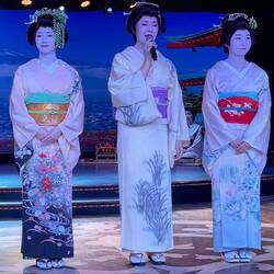 4 of 4 - showing the Geisha beauty and the details of dress, dances and telling stories (see 1 of 4 for more detail writeup). See our photos with the geishas in the last four of these photos.