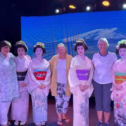 The next 4 footprints are all about Geishas. We had a wonderful entertaining experience in our evening in Kobe (Kyoto), where Geishas originated. Geishas have endured 500 years and although they are admired by those around the world, they are mostly very misunderstood symbols of Japan. They began in the late Edo Period, of Japan and there are still many young women who are prepared to learn the culture and customs of geisha and become a part of Japanese history and tradition.