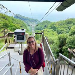 Next, we took a tour that began with a bus ride to the Nihondaira Ropeway (or cable car). We went up this cable car .7 miles and 394 feet and had views of the Suruga Bay with Mt Fuji clouded in the background.