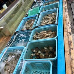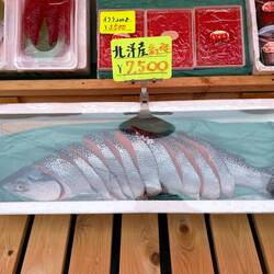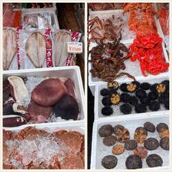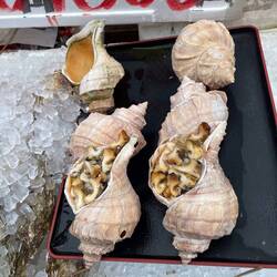 We arrived back at the base and got back on our bus for our last stop … which was right near the ship. Our tour ended with a walk around the Asa-ichi Morning Market open daily from 5am – noon and has over 250 stalls selling FISH. This 4 square block market was ALL seafood and fruits. This was the place for you if you wanted fresh squid (town specialty made many different ways including into ice cream), fermented carp, Jellyfish, barnacles, or any type of seafood. Of course you could also fish for your own breakfast (over a tank) to catch and put right in a pot and cook for you right there to eat. One of the more interesting things we saw was fruit. Fruit? Yes, normal apples, grapes and melons … all at outrageous prices. A perfect melon (the only type they will sell, which is why it’s so expensive) can range from $50-100. I hope it taste good … I wouldn’t know since I couldn’t get the Chef to but any when I saw him in the market. As for the fish market… Bruce was happy to see it quickly and leave for the ship.