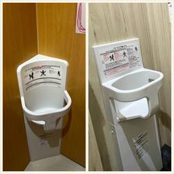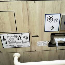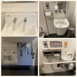 - Clear icons, a changing table, a place for the toddler to sit strapped in while waiting for you, all bathrooms are handicapped accessible, in braille too, plenty of counter space, a supply of toilet paper and soap always, and hands-free flushing.