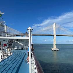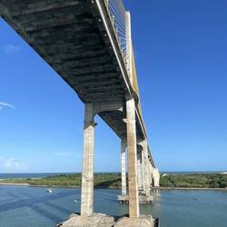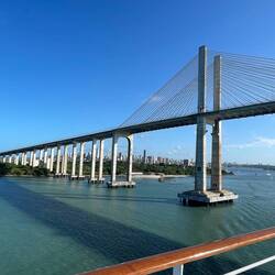 Sailaway under the Newton Navarro Bridge, the biggest bridge in Brazil, which connects the North Zone and the cities of the north coast to the South Zone and the other regions of the city that cross the Potengi River. The structure is 5,840 feet (1,780 meters) long and 72 feet (22 meters) wide.Read more