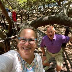 But MY favorite highlight (and I could have made an entire Footprint on it) was the WORLD’S LARGEST CASHEW TREE! Guinness Book of Records certified this now ~130 year old tree in 1994 and one of the many striking things is that it grows “out” versus “up”. There are raised wooden walkways that lead you through a “forest” to the center trunk which is actually very simple. We also climbed a staircase to an overlook high above the tree to get a birds eye view. It’s hard to believe that you are looking at s SINGLE tree! This tree is 70 times the size of an average tree. I was amazed and couldn’t get enough of this interesting phenomena. And while a fan of nuts, cashews are my least favorite (Bruce’s fav). I might just have to rethink them now! BTW, cashew nuts are hard to “make”, with each fruit producing ONE nut that subsequently has to go thru many processes to make it edible …one nut.