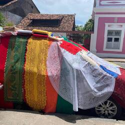 From here, we continued on to the 18th century Basílica Santuário Senhor do Bonfim. The miracle room is where people leave their ribbon near a replica of the body part that needs healing and when it breaks your wish comes true (this is in addition to simply wearing it – but which will come sooner?). On the outside of the Church are a collection of ribbons people left for good luck.