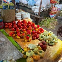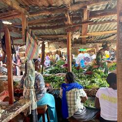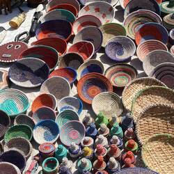 The Gambia, the smallest African Country, is surrounded on 3 sides by Senegal and one side by the Atlantic Ocean with a river that runs through the entire country. We went to the largest market in The Gambia, Banjul Albert Market. What a “challenging” experience it was. We took a bus there and they left us off in an area that could only be described as looking like a garbage dump at the end of a bumpy, dirt road lined with trash. When we got off (other people refused and asked to be taken right back to the ship) we “found” a young person (Albert) who did not speak English but wanted to show us around. Yes, English is the official language but many do not speak/understand English but some version of many African languages and French. It seemed like a very “iffy area” but we proceeded with Albert as he took us through a maze of rows and stalls, making and selling everything from used clothing, chickens, vegetables in all stages of being cut and cleaned, grains and herbs, fish (dead and alive), chickens, “coffee” (you will have to ask for more info) and broken TV sets. Should I go on?