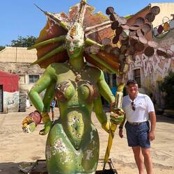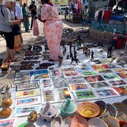 Although the Cape Verde is not very “Verde” (green) with its barren mountain scenery, there are interesting formations that lead down to beautiful beaches. First, we went to Praca Nova, the colonial square and went into the Cape Verdean Cultural museum and theater which includes rotating exhibits from local artists and a quaint old theater (interesting model boats). We then visited an active fish market, a vegetable market and an outdoor art exhibit. Next, we walked to a West African marketplace that sold handcrafted goods of wood, wicker baskets and art.