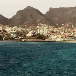 We arrived today at the West African island country of Cape Verde (pop 588,000) which is about 350 miles from the coast of Africa (Senegal). We spent the day on the island of São Vincent (one of 10 islands as indicated by the stars on their flag) which covers 1,557 square miles. We arrived at Porto Grande Bay on the north side of the island where Mindelo is located, the largest port city lined with old colonial houses. The city is home to 93% of the entire island's population (81,014) where 49% are under 25 years old and only 7% over 65 years old. In Cape Verde the population speak Portuguese and Creole (a hybrid African language).