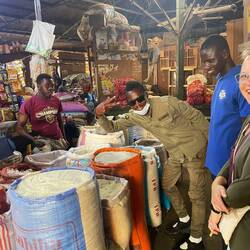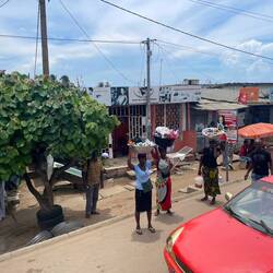 We insisted that we had to go back to where they found us where the bus dropped us off at the trash heap. After another dozen twists and turns and 10 nervous minutes we ended up about a block from the bus. At this point of course they began to get more anxious looking to deal for payment. The good news is one of the entertainers from the ship (thx Keenan) saw us in an uncomfortable place and ran over to “help”. We quickly got out and back to the bus and safety. We were probably not in danger, but the situation might have been a risky one, we just could not tell. This was our experience in the market in Gambia.
