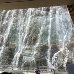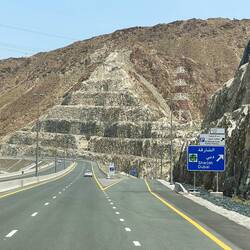 Next, we saw the Sheikh Zayed mosque (that can accommodate 28,000 worshippers). Then on our way through the Hajjar mountains range we pulled over to see the massive recently completed (2/23) Etihad rail, that connects all 7 emirates for cargo transportation. It was a 14 year project that utilized 215 companies resources, 11 contractors and over 20,000 specialists with 133 million hours of work. It required 593 bridges, and 9 tunnels and connects 4 major ports. It has the capacity of moving 60 million tons of goods annually with its current trains. The next phase will be about moving people around the emirates which is expected to change the entire face of where people can live and how tourists will visit the emirates.