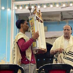 This was a moving experience as we joined the Morning Service where everyone wore tefillin and tallism just like how I grew up in NY and we stayed through the hakafah and the reading of the Torah. The morning Service could have been anywhere except for the fact that the Siddur was in Hebrew and a local Indian dialect rather than English. The Rabbi is from Israel although much of the Service was run by lay leaders. One of the Congregants told us all about the history and survival of this Synagogue and how these days the funding is mostly though a small legacy as donations.