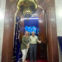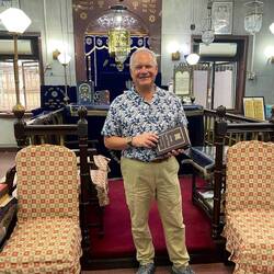 There were 200 members by 1923 when it was refurbished. There are less than that number at this time but they still have weekly Services although the Chazan recently left and is being lay led. We were treated to a wonderful experience of speaking one on one with the grandson of the original founder of the Synagogue. Benjamin Abraham Chincholkar is currently the VP but also the all-around lay leader, major supporter, maintenance person, tour guide, historian, etc. His grandfather had founded, built, paid for, designed, and provided for the expansion.
