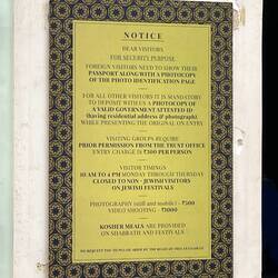 The synagogue houses 1600 year-old copper plates (led by Joseph Rabban) which has on it the community charter of independence granted to the Jewish community inscribed. Outside the synagogue, there are iron gates decorated with a Jewish Star. On top is a Dutch-style square clock tower with four clocks featuring four different numerals: Hebrew numerals facing the synagogue, Roman numerals facing the palace, Malayalam (Indian) numerals facing the harbor and Arabic numerals facing the public. The floors are covered in hundreds of individually unique hand-painted porcelain tiles brought from China. The Torah, beautifully adorned could only be seen in photos (and the postcards I got) since the ark is only opened on Shabbat morning.