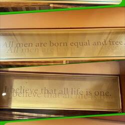For example, hundreds of Jews sought refuge in Albania in 1943 and were welcomed by the majority-Muslim population. One of Albania’s most sacred cultural traditions is discussed in the exhibit, “Besa” (“word of honor.” ) It places emphasis on protecting people in times of need, irrespective of where they come from. “Albania is the only country where the number of Jewish people actually went UP as a result of the Holocaust. At the end of the exhibition’s section, there is a verse from the Quran written in Arabic which says “Whoever saves one life, saves the whole entire world” (also in Talmud).