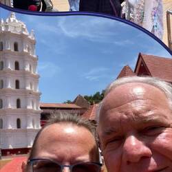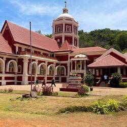 After a fun welcome, our tour included a drive around Goa where we got to see some beautiful homes (see photos) and some that needed work because they were abandoned and others that were more simple. From there we went to the Se Cathedral and Basilica of Born Jesus. The Basilica and the Cathedral across the street (see white Church and interior shots) were built in the 17th century. From there we went to the Hindu Temple, Shri Shantadurga Saunsthan, a private temple complex belonging to the Goud Saraswat Brahman Samaj. It is dedicated to Shantadurga, the goddess who mediates between Vishnu and Shiva (no interior photos allowed). There is a main temple and three smaller temples of other deities which have been built on three sides of the temple. The temple consists of a collection of pyramidal roofs with a dome. Visitors could only walk around the perimeter inside as the “inner” areas were just for Priests.