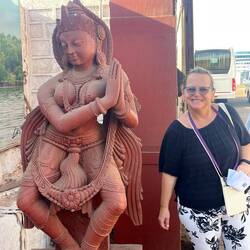Mangalore (Mangaluru) is a large port on the West side of India with a population of 750,000 and only 65 sq miles, it is small but very strategic for oil reserves (it is where 2 rivers join the Arabian sea). Unfortunately, they still buy oil to refine from Russia to see to Europe. Mangalore also handles 75% of India’s coffee and cashew and teak exports making it one of the largest container ports in India. It is also known as a location for many call centers that we know and love (do we really love them?). Although it was founded in the 9th Century, the Portuguese were here before it became British ruled in 1799 until Independence in 1947 and has become a major commercial, business, educational and startup hub in India. The landscape we saw was covered in skyscrapers but once out of the city there was a combination of rolling hills, farms, and rivers amongst the Temple we went to visit.