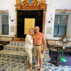 Kochin is nicknamed “God’s Own Country”. Our visit to “JEW TOWN” was quite a surreal experience. In addition, the belief that Jews were here in Kochi in biblical times after 68 AD, there were still many generations of Jews that settled in this part of India since the 15th Century after persecution by the Portuguese. Until 1948 the Jewish Community had over 2000 members. There are now only two Jews left in this town. There are 14 people (5 families) that are Jewish in the state of Kerala. They still maintain a Synagogue mostly through the donations from visitors and they have Shabbat and High Holyday services. In spite of this sounding sad, they have left quite a legacy and permanent mark as the place where Judaism began in India.