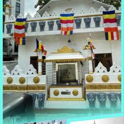 The Sri Lankan flag was very interesting: a golden lion holding a kastane sword in its right fore-paw in a maroon background with four gold bo leaves, one in each corner. This is bordered by gold, and to its left are two vertical stripes of equal size in teal and orange, with the orange stripe closest to the lion. The lion and the maroon background represent the Sinhalese, while the saffron border and four bo leaves represent concepts of mettā (loving kindness) karuṇā (compassion), muditā (joy) and upekshā (equanimity) respectively. The stripes represent the country's two largest minorities, with the orange representing the Tamils living in Sri Lanka – both the Sri Lankan Tamils and the Indian Tamils of Sri Lanka – and the green stripe representing the Sri Lankan Moors (Muslims of Sri Lanka). The golden yellow border represents the other minority communities of the country. Phew. And let's not forget the Buddhist flag which just as much meaning. Both flags are everywhere.