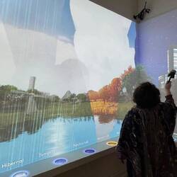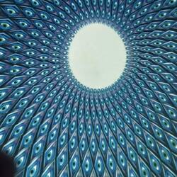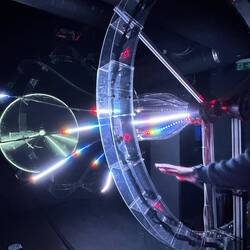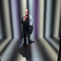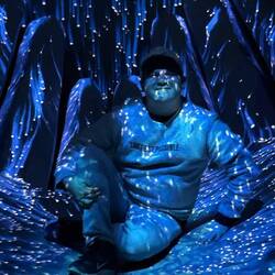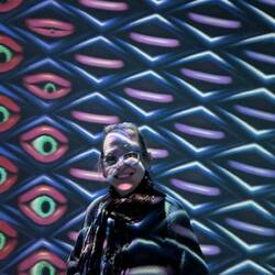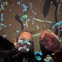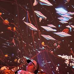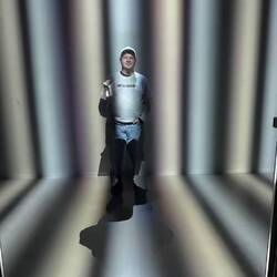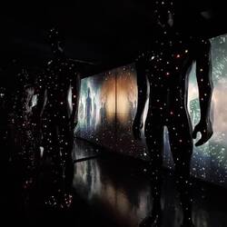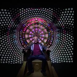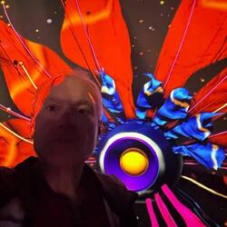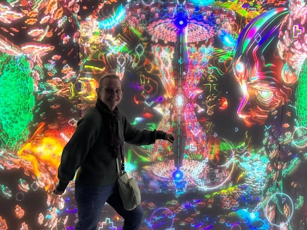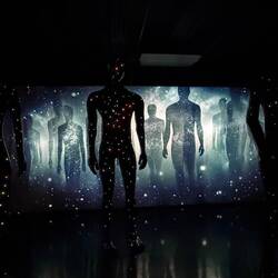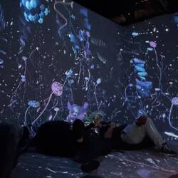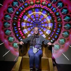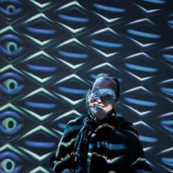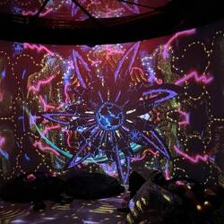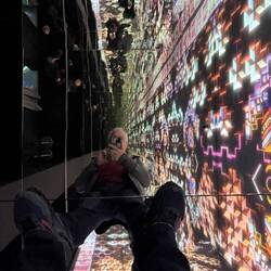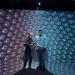 The Visitors, 4 human-shaped figures standing in a cosmic environment, silently observe and respond with subtle light and sound impulses, as if sensing your presence. The Oracle, an entity residing inside a large LED chamber, reveals what the stars say about you. I entered by birthdate and it generated a personalized reading based on my astrological profile (see video). All Eyes on You, greeted us with a field of eyes arranged in the pattern of the Flower of Life. As you walk across the surface, the eyes gently close beneath your feet, then reopen once you step away reacting to your movements. The longer we linger in the space, the more vivid and responsive they become. Prizma was inspired by an Amazonian tribe known for its intricate textile and ceramic artistry. As you moved left or right, the visual patterns come to life, subtly responding to gestures. The visit ends with the Solfeggio Room with colors and vibrations made to support healing and deep relaxation. The ancient tones here appear both in Gregorian chants and in Indian Sanskrit mantras and were part of a 1970s study on these tones and their effect on consciousness and healing.Læs mere