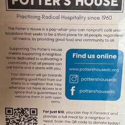 Potters non-profit bookstore and cafe since 1960 is for activism and community involvement and transformation. Books on social movements, cultural studies and spiritual traditions, host talks and get togethers are a regular occurrence here. Potter's House Books is an affiliate of Bookshop.org, a new venture that is revolutionizing book-buying by allowing consumers the ease and speed of an Amazon-like online shopping experience while still supporting local independent bookstores.