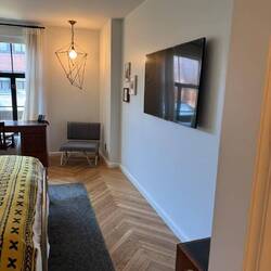 We stayed in a busy part of town, near Madison Square Garden (where there was a Rangers game tonight) and the Tenderloin Section of Manhattan. For our one night stay we were treated to a very large suite including a dining room table and living room, not easy to get in NYC! We were right opposite the old 23rd precinct of NYC, so there were many police cars out front…comforting.