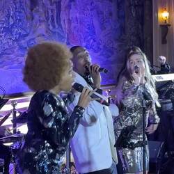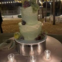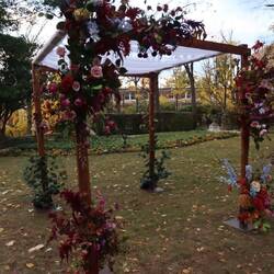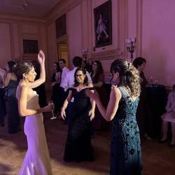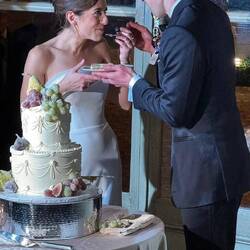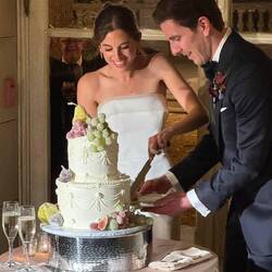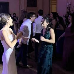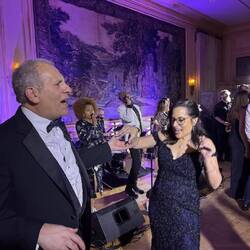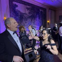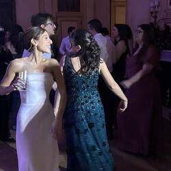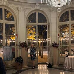 It was quite a beautiful and elegant wedding with vows exchanged under a beautiful outdoor chuppah on 3 acres lined with 40 linden trees, imported from Europe when the house was built. The statues throughout the garden are original to the house.