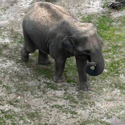 Asian Elephants were another highlight on the elephant trail, also with an inside and outside, pools, and a walkway through the woods. It is the largest living land animal in Asia with a long trunk with a single finger-like ability, large tusks in males, folded large ears and wrinkled grey averaging 4.4 tons (females are 3 tons). They have large developed neocortex of the brain, are highly intelligent and self-aware being able to display behaviors associated with grief, learning and greeting. The six Asian elephants that live in Elephant Trails are one bull named Spike and five cows named Bozie, Swarna, Maharani, Trong Nhi, and Nhi Linh.