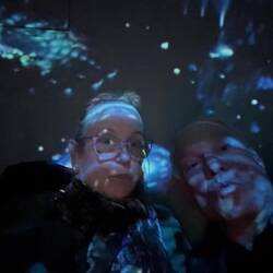 We had a fun few hours at Cinema Mystica, a new experience on the Hungarian art scene. It is difficult to describe all the art, lights, sounds, projected spaces, 3D printed sculptures and media effects we experienced. It is an immersive exhibition from 26 Hungarian and international artists. There are 21 digital artworks across in 10 rooms and plenty of places to stand, sit or lie to experience them. You become a part of the art. Look at the photos and 5 videos to get a feel for our experience there. Here is a short description of some of the art.