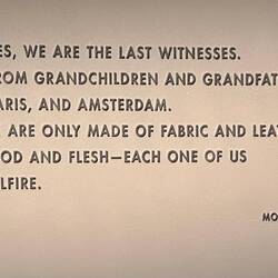 Our remembering is an act of generosity, aimed at saving people in the future from apathy to evil and to transform as many human beings as possible. The Holocaust memory will dominate future events as it currently affects so many people’s thinking and actions. It could not have occurred without the collapse of religious and social norms, somehow “forgetting” that all humans are created in the likeness of God. By studying the Holocaust, this museum hopes to help immunize us against this disease that was particular to the this time.