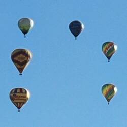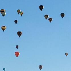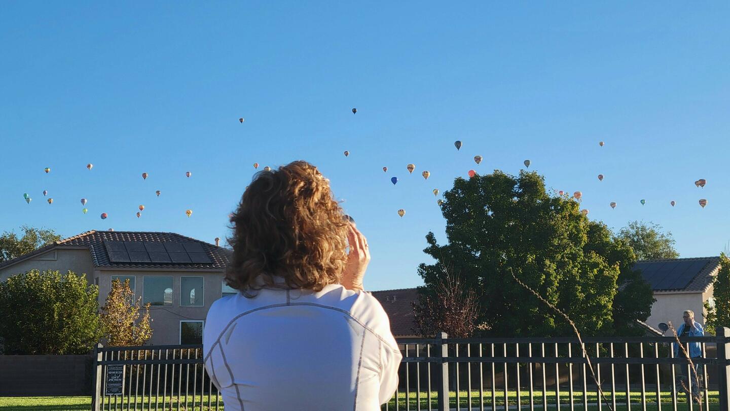 We got up before dawn and drove to a neighborhood park to view the mass ascension. At first, there were only a few balloons, but pretty soon they filled the sky!