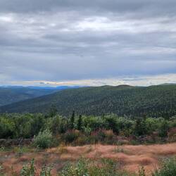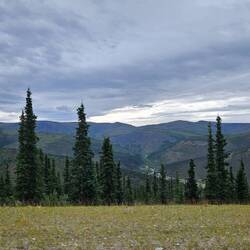 Wir fahren den "Top of the World Highway" nach Dawson City. Dabei passieren wir bei Little Gold ein letztes Mal die Grenze nach Kanada.