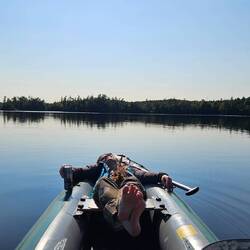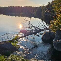 Wir geniessen unseren letzten Übernachtungsplatz in der Natur und fahren nochmals mit dem Boot auf den See. Dabei haben wir Glück und erhalten einen warmen und sonnigen Herbsttag.