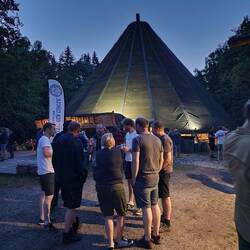 Heute Abend war die 2. Party . Wir sind in der Nähe von Tallin in einem kleinen Zeltdorf. Mit Naturduschen und WC. 2x Sauna und 2x eine Hot-Tube ( das sind großen Badewannen die mit Holz beheizt werden)