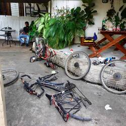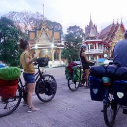 Nous avons retrouvé nos vélos sains et saufs dans la petite guesthouse de Surat Thani où nous les avions laissés. L’interlude d’un mois pour profiter de nos amis/famille venus nous rendreLeggi altro