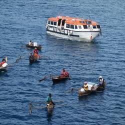 There is no record of a cruise ship ever having stopped at Mahajanga before, so this piqued our interest as we dropped anchor just off of Mahajanga. Initially, this posed a problem because the tenderLeia mais