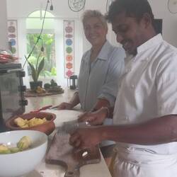 Kochkurs im Phoenix House. Sri Lankesisches Curry mit Reis, Mango Curry, Ananas Curry, Jackfrucht Curry, Hühnchen Curry und Hoppers. Einen wunderbaren Chefkoch und eine tolle iranische FamilieRead more