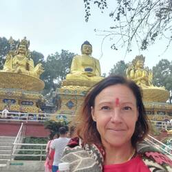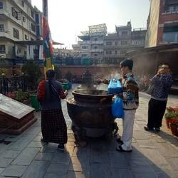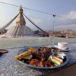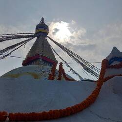 Erster Tag Kathmandu. Boudanath Viertel und Boudanath Stupa, Shechen Temple mit Sound Zeremonie, leckerem Dindho - Buchweizen-Breath mit Curry - und ueberwaltigt von den engen Gassen und der AuswahlRead more