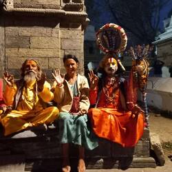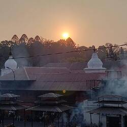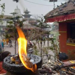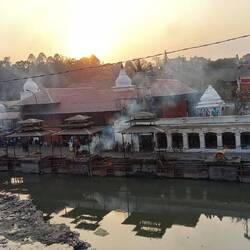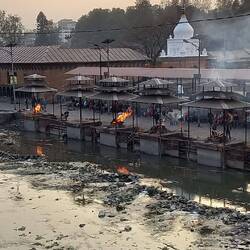 Erster Abend in Kathmandu, Durch Zufall bei der abendlichen Feuerzeremonie im Pashupathinath Temple gelandet. Leben und Tod wird gefeiert. Auf der einen Seite des Flusses werden tote Koerper dem FeuerRead more