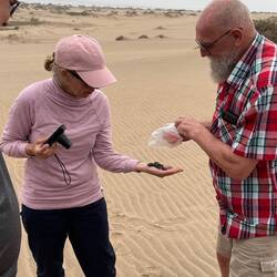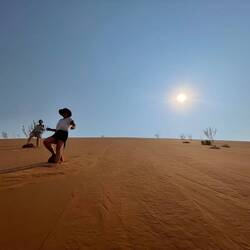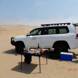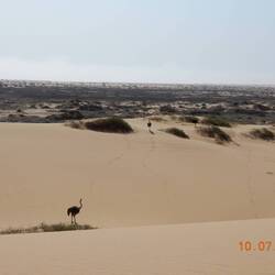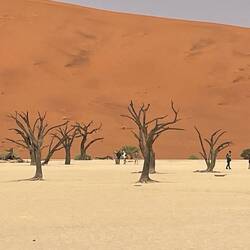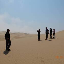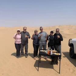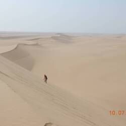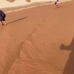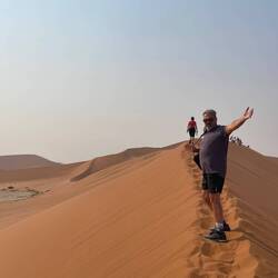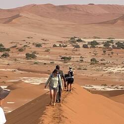 Uanee had us up early today for breakfast at the dunes of Soussusvlei, so we could make our 300ft climb before the heat set in. Fun to climb, but so much more to come down the face through the sand.Baca lagi