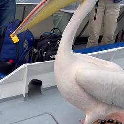 We never know what we're heading into!? This morning we were on a catamaran enjoying the dolphins, seals and this crazy bad bad pelican ❣️He was giant and so funny! Then in the afternoon we wereBaca lagi