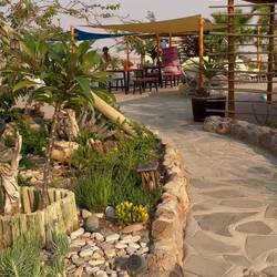 We only stayed one night here but what a cute lodge. Every cottage is fenced with different gardens growing within for the kitchen/restaurant. The "feathered locusts" were in such abundance, 1000's ofBaca lagi