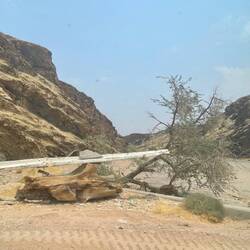 It was time to leave the beautiful Etosha today. We stopped at the Petrified Forest. So interesting to learn about these trees that are over 250 million years old! From before the dinosaur age. TheyBaca lagi