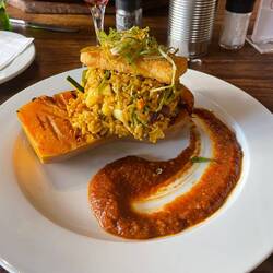 It was a very bumpy gravel ride to reach the coastal city of Swakopmund. It's a pretty town, and felt strange to be back in a city. We strolled around and enjoyed a couple beautiful meals at TheBaca lagi