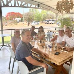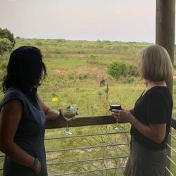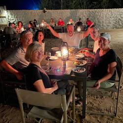 Relaxing afternoon, before the touring starts tomorrow, dinner with our new friend Laura and guide Uanee. A giraffe sighting on the side of the road, definitely let us know we were somewhere new!